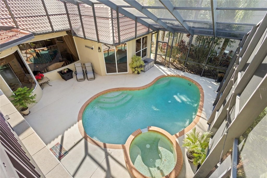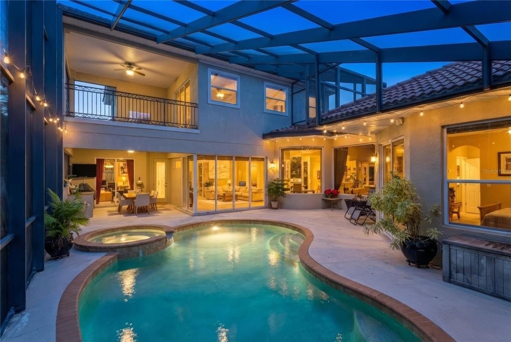 Set in the heart of Greenbrook Village, this beautifully maintained residence showcases an expansive floor plan, elegant architectural details, and a coveted Lakewood Ranch lifestyle near parks and top-rated schools. The double glass front doors create a striking first impression, opening to a welcoming foyer where soaring ceilings, elegant crown molding, and an airy, open ambiance set the tone for the entire home. A thoughtfully positioned office or flex space near the entry provides a private and polished setting for a home office or a quiet retreat. Designed with both everyday comfort and upscale entertaining in mind, the main living areas flow seamlessly between the living room, dining space, and family room. The kitchen serves as a true centerpiece, featuring gas cooking, a double oven, a spacious center island, and generous counter and storage space, ideal for hosting and gathering. Bamboo flooring in the entryway, dining, and living areas adds warmth and sophistication, while updated luxury vinyl plank flooring graces the bedrooms, and tile flows throughout the main living area and kitchen. Privately situated on the main level, the primary suite offers a serene retreat with direct access to the outdoor living area. The spa inspired ensuite bath includes dual vanities, a soaking tub, a spacious walk-in shower, and walk-in closets that create a luxurious escape at the end of the day. As you walk through the home, you'll notice the expansive aquarium windows filling the home with natural light, as well as zero corner sliders for an unobstructed flow to the pool and lanai for elevated indoor-outdoor living. As you step outside to the screened outdoor living area, where the pool and large patio are complemented by the outdoor kitchen and serene pond views, delivering a private and picturesque setting. The upper level extends the home's versatility with a spacious bonus room enhanced by a wet bar, perfect for a movie room, game room, or a private space for overnight guests. This level also includes an additional bedroom, a full bathroom, and access to a large balcony overlooking the pool, offering a rare elevated outdoor space for relaxing or entertaining. Additional features include a three-car garage with a newer belt-driven garage door, upstairs AC replaced in 2025, downstairs AC replaced in 2019, a newer gas water heater, and a newer variable-speed pool pump. With nearly 4,000 square feet of well-designed living space, upscale finishes, multiple indoor and outdoor living spaces, and the best of Lakewood Ranch living, this exceptional residence offers a lifestyle defined by comfort, elegance, and convenience.